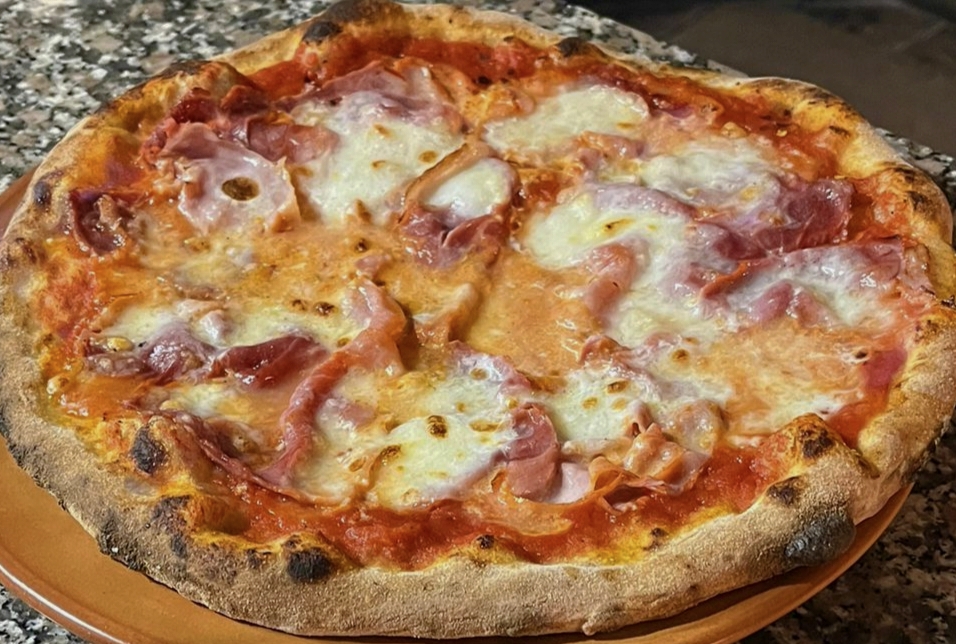 tomato, chilli pepper, Val d'Orcia artisan cooked ham, mozzarella, milk cream and a few drops of vodka.